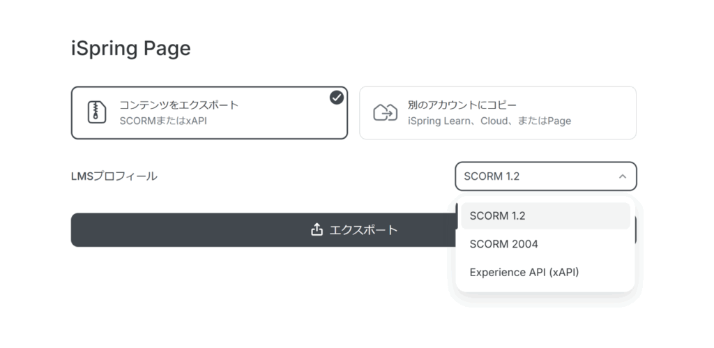 ↓できあがったら、既存LMS用にzip化するか、iSpring LeanやiSpring Cloudにそのままアップロード可能。(また、リンクも生成できますので、LMSがなくてもコンテンツを配信できます!)