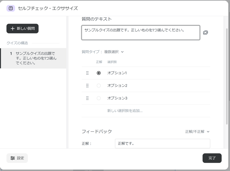 ↓クイズも簡単に作れちゃいます。やっぱりクイズがないと個人的には物足りなさを感じますが、ちゃんとそこはカバー。