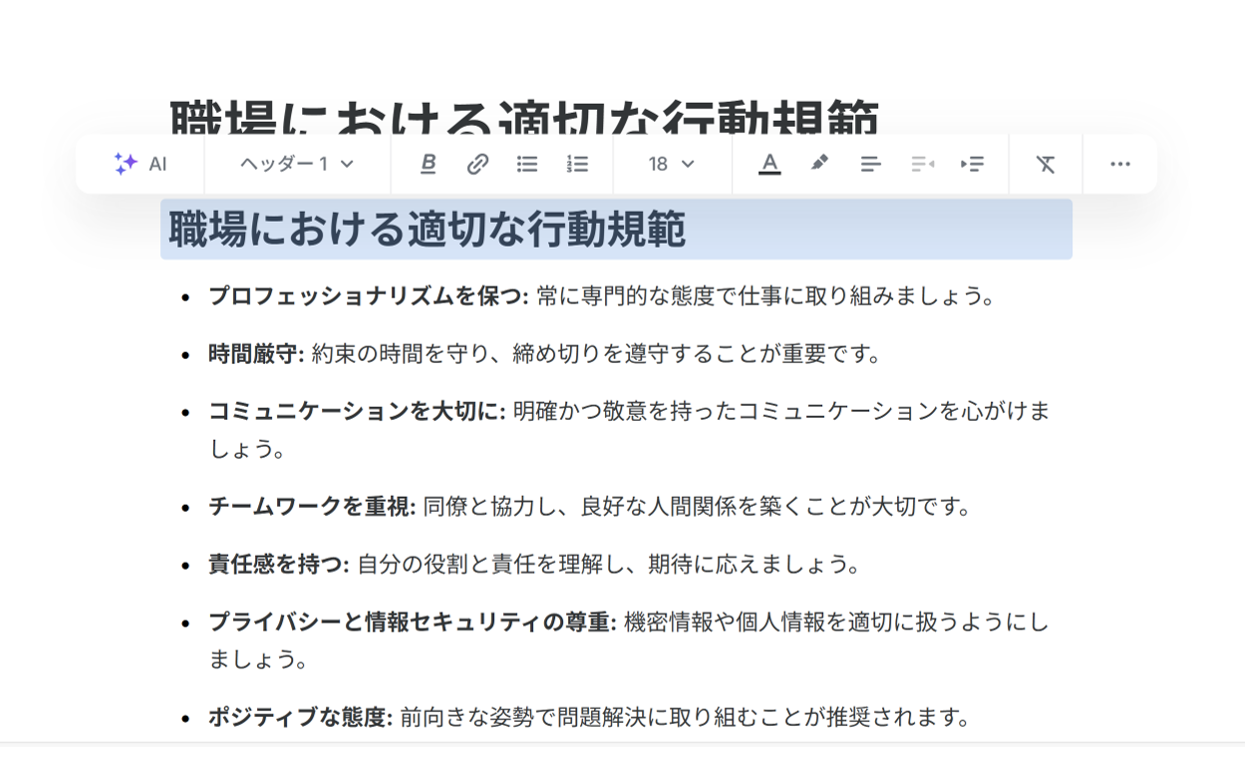 ④テキストはその部分を選択すると、上部にメニューが表示され、ヘッダーを追加したり、テキストの大きさ等を調整可能です。