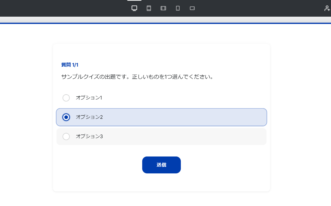 ⑤クイズもドロップダウンメニューから選択すれば、すぐにフォーマットが表示されますので、クイズを簡単に作成できます。