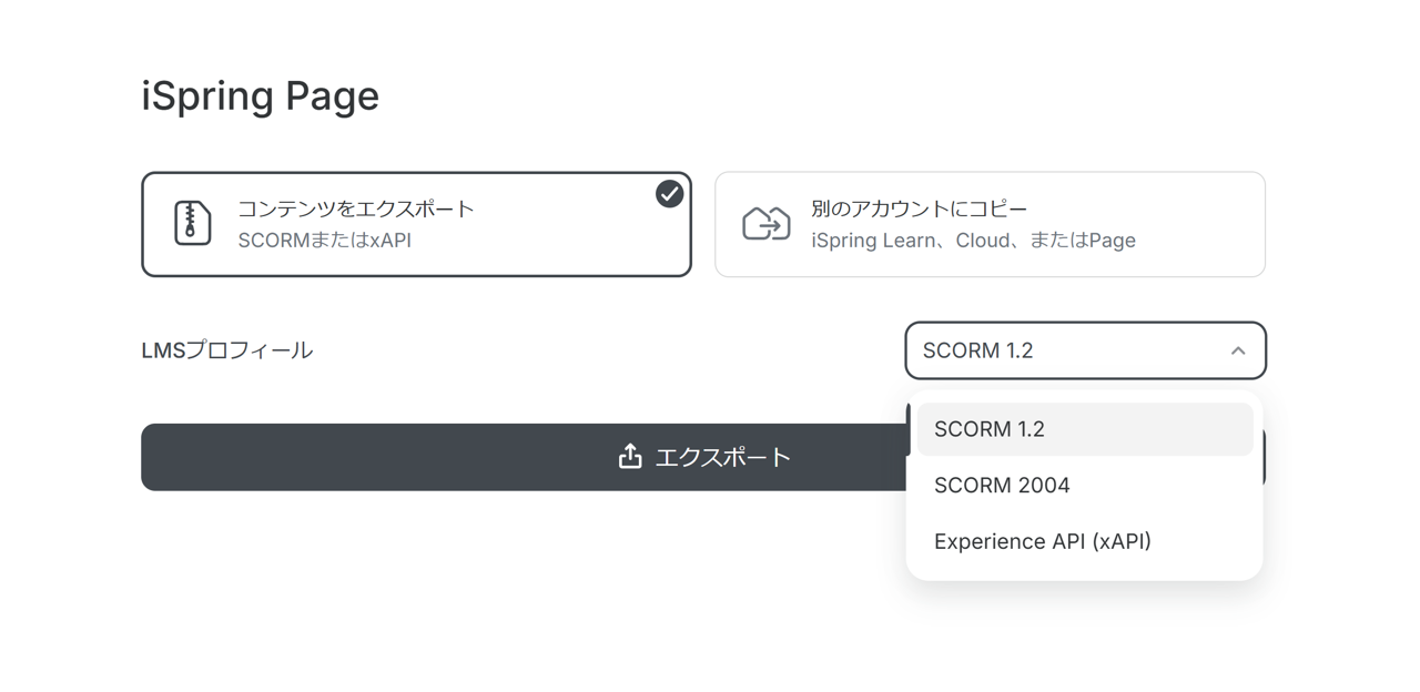 ①コンテンツの進捗を管理したい場合、SCORM対応の.zipに変換(エクスポート)するか、