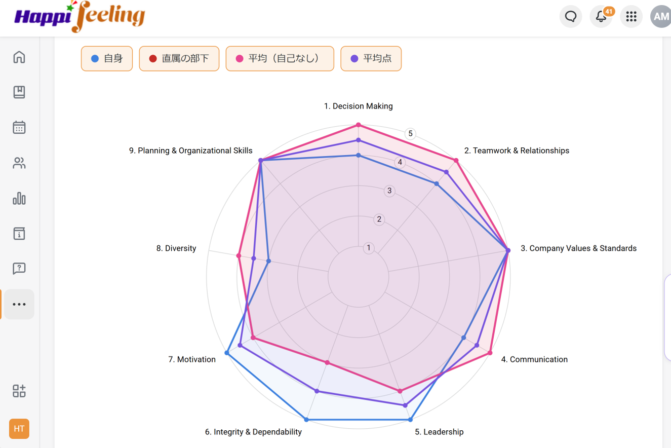 得られた評価は隠れた才能、ブラインドスポット等分析され、従業員の現在の姿から、今後の成長エリア等具体的に可視化する材料として有効に使うことができます。
