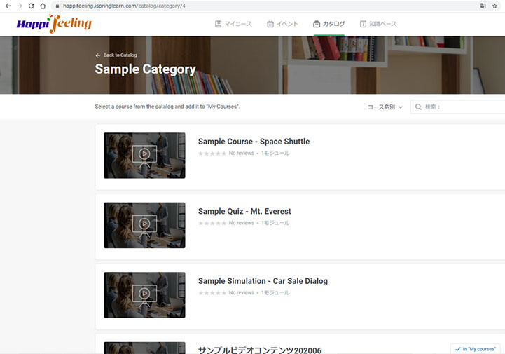 iSpring Learn内で管理されているコンテンツを一覧できます。