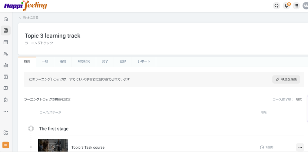 コース一般情報(サムネイル、カバー画像、担当インストラクタ)の他、受講者、管理者への通知、受講期日、セルフレジストレーション条件、証明書や再登録、ポイント付与条件、自動割り当て、レポート抽出等スムーズに管理可能です。
