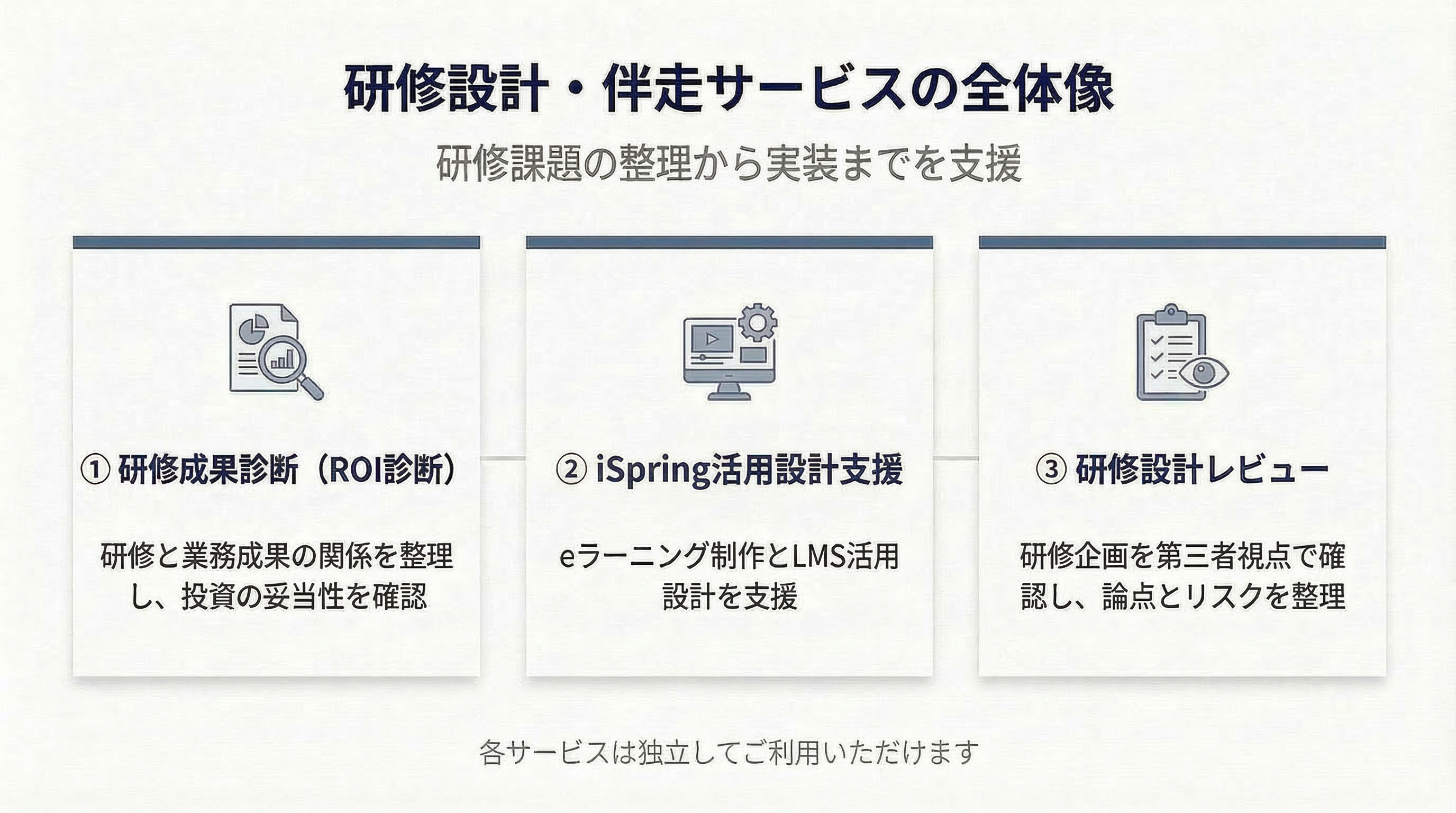 あわせて、教育施策を業務成果につなげるための設計構造や投資効果(ROI)視点の整理も行います。